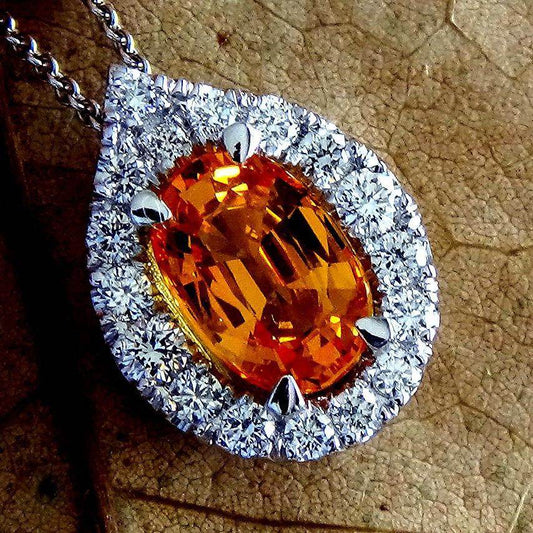 featuring an alluring natural oval center sapphire enriched with stunning hues of blue, orange, yellow, and red. This exquisite body beautifully complements the sparkling diamonds set in pure 14k and 18k gold. An anytime accessory, this sapphire gold necklace creates the perfect charm for your jewelry collection.