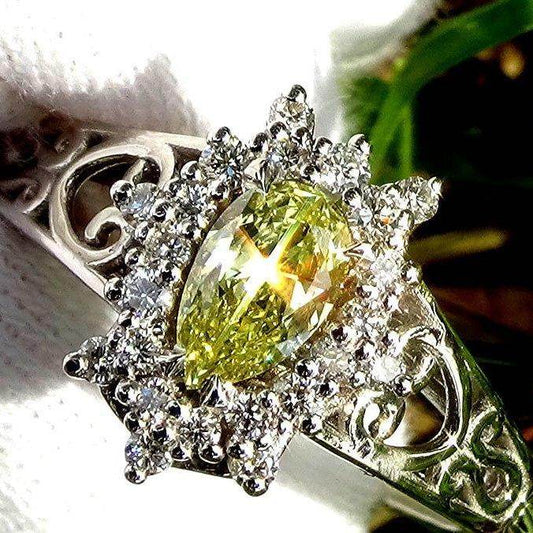 Each ring is styled to house an original natural diamond set into the ring, either in the whitest white color or charming fancy yellow hue, with VS clarity to ensure that brilliant sparkling finish. Choose from an array of breathtaking cuts: pear, cushion, oval, round, princess, or emerald. Settings are in either bezel or prongs. All diamond rings for women made in solid gold of 14k or 18k, this ring will represent a timeless spirit of love.
