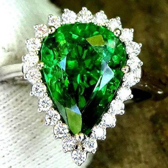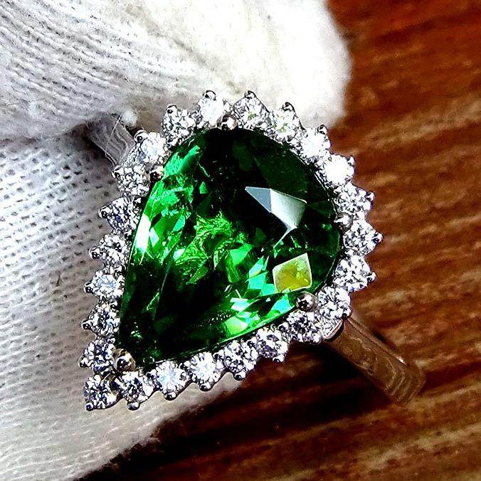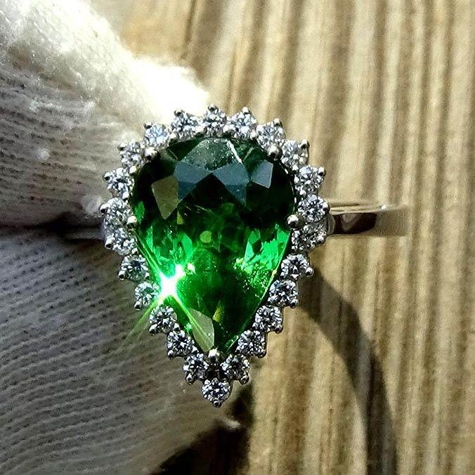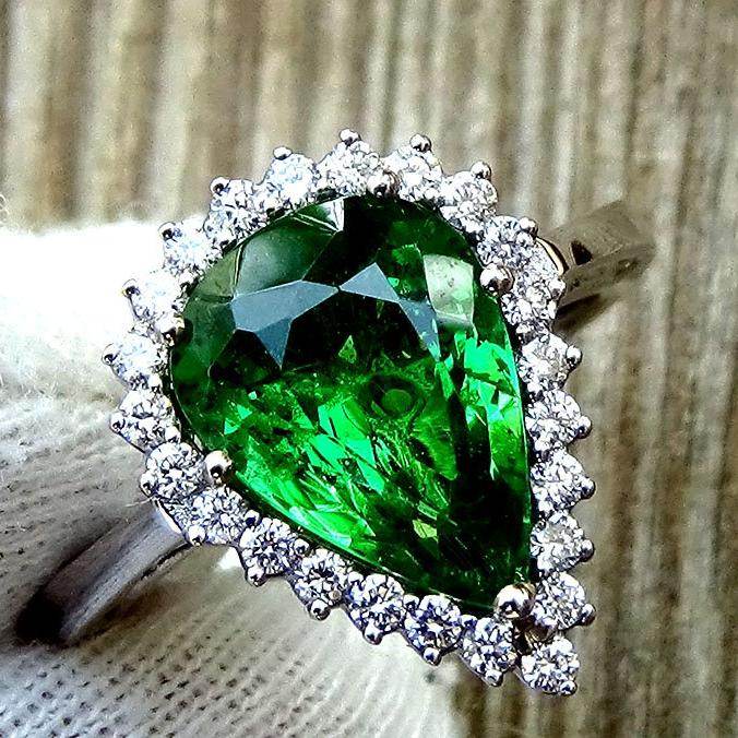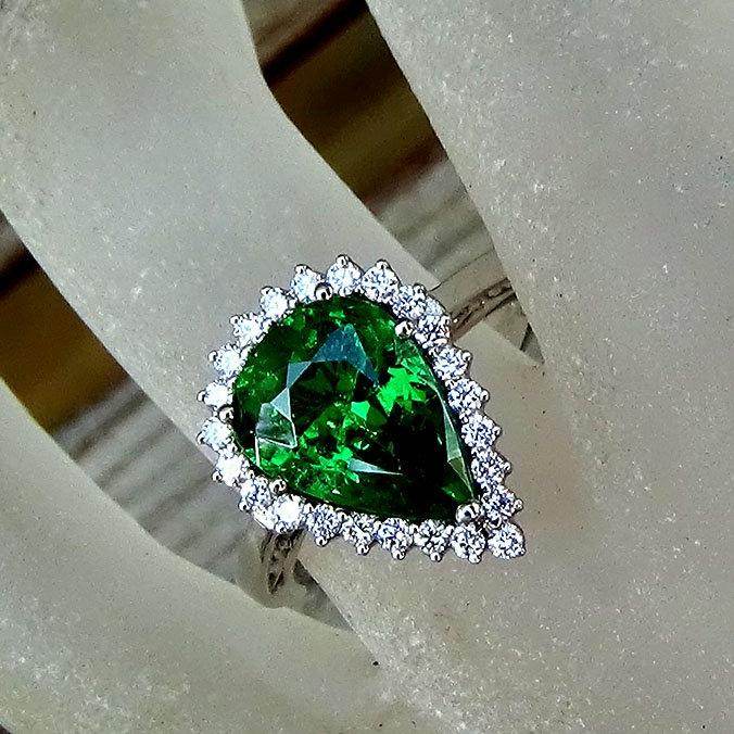 Green tsavorite garnet ring