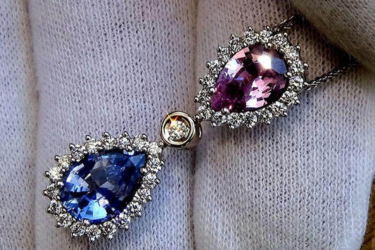 The cut of each sapphire and diamond pendant is designed using complex engineering to improve the aesthetic look of the sapphire pendant, enabling light to refract in the crystal and giving an explosive color inside.