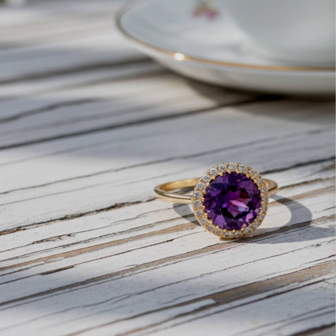 Ivana - 2.30 carat purple amethyst and diamonds in 14k gold