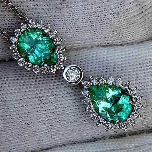 A beautiful green emerald and brilliant diamond necklace makes it impossible to forget a gift for any occasion. This piece is perfect, whether celebrating a 50th anniversary, a sweet sixteen, or tossing it with someone's boyfriend. This meritorious jewellery piece could express love and appreciation with its emerald green color, a symbol of love, rebirth, and fertility—the perfect manifestations of strong love and commitment. Along with sparkling diamonds, its personification of true love and the enduring promise of beauty. It will be treasured for its beauty, symbolism, and timelessness—for yourself or someone else.